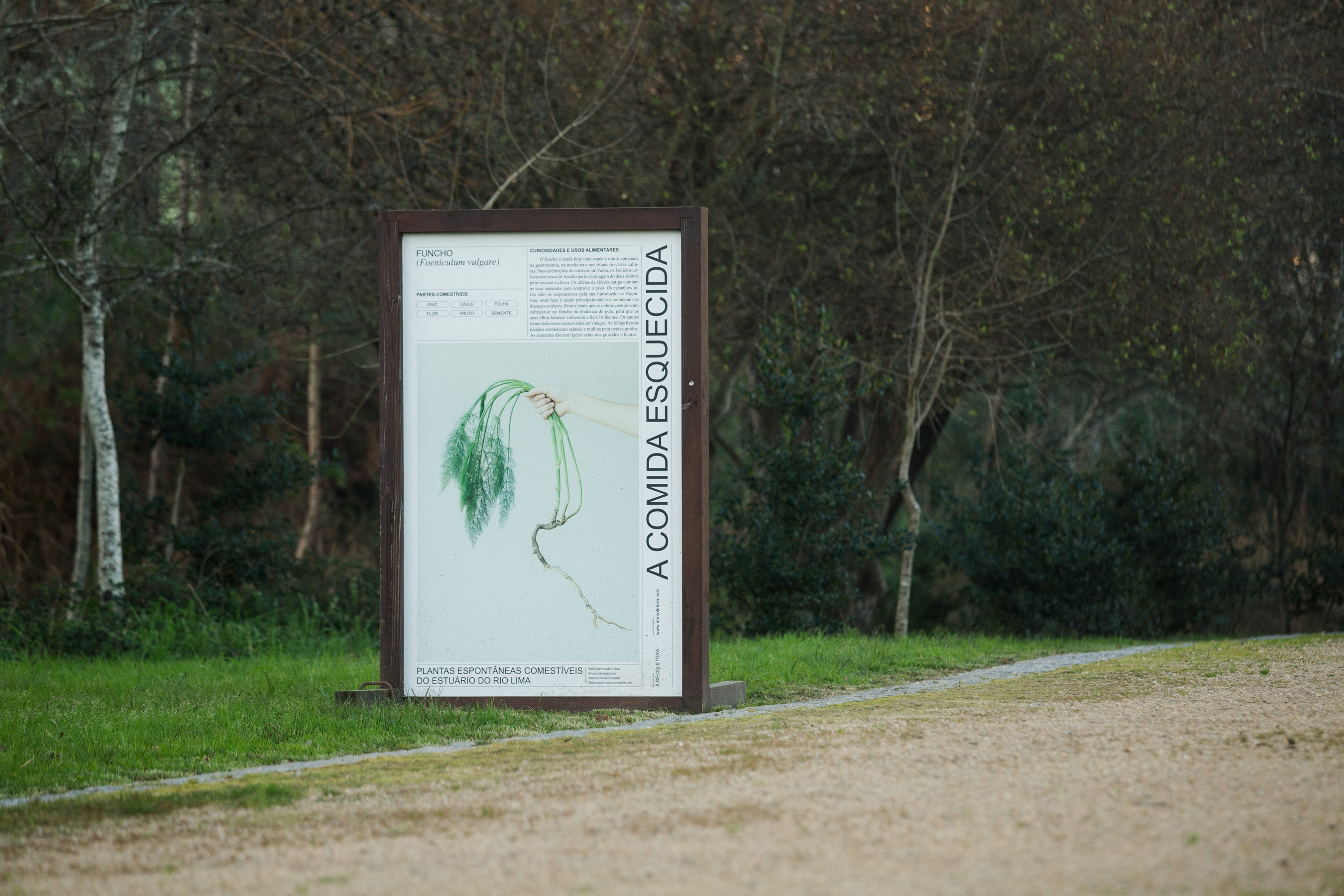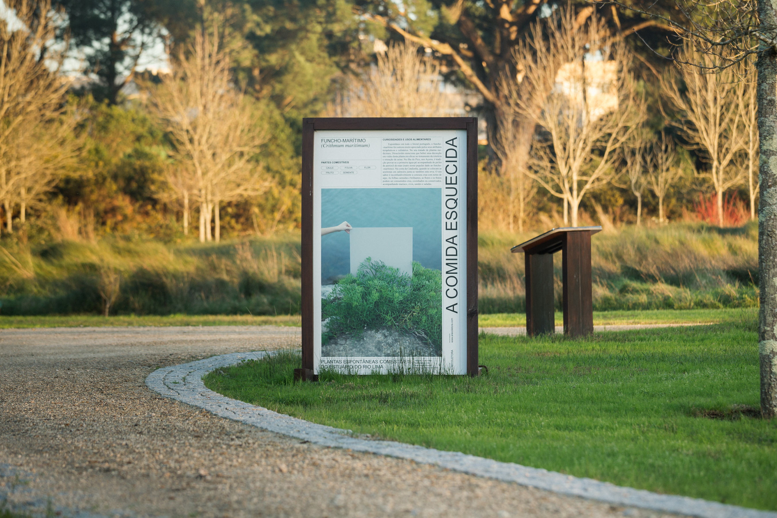 Após o trabalho de campo e de um período de investigação e criação, no qual decidimos trabalhar de forma dedicada 16 espécies, inauguramos no dia 21 de junho no Parque Ecológico Urbano o projeto “A comida esquecida", que foi apresentado sob a forma de cartazes num percurso expositivo circular e ao ar livre, posteriormente ativado através de uma caminhada botânica guiada pela herbalista Fernanda Botelho, que permitiu a descoberta e identificação das espécies in loco.